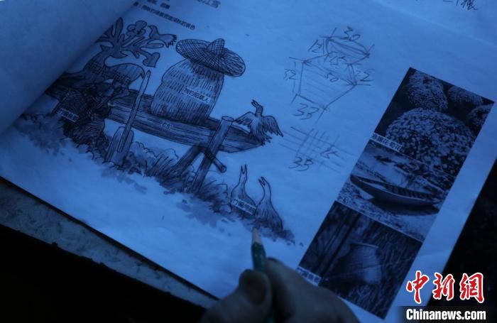 黄大青正在用铅笔做设计图纸 吴建勋 摄
