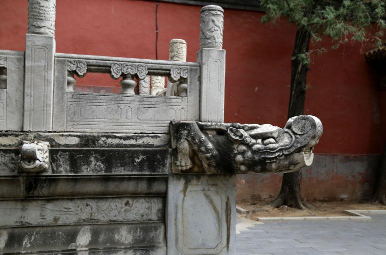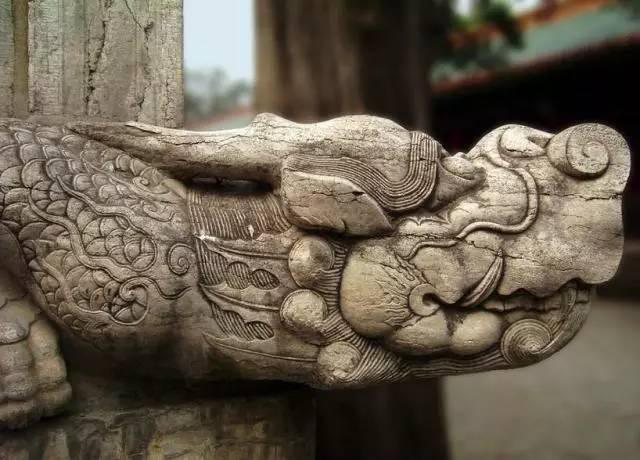 螭首是古代建筑石作制度中的主角之一,有平衡台基望柱的重力和排水的功能,同时也是建筑上的装饰构件,是标志着封建礼制建筑等级的象征,是实用与装饰的完美结合的建筑装饰小品。节奏和韵律是中国古建筑的重要特点。