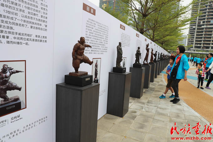 深圳现有少数民族人口近100万,“来了就是深圳人”的话语深入人心。这是2018年11月在深圳举办的“行走的雕塑”活动中的少数民族雕塑展(和勇 摄影)