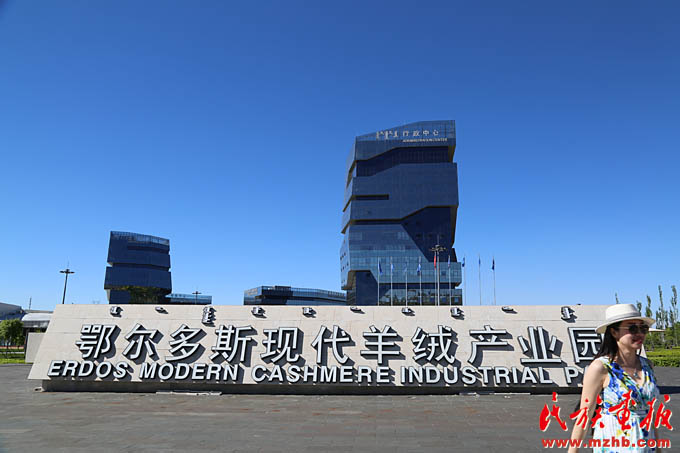 随着改革开放一同成长的鄂尔多斯集团已成为世界上最大的羊绒制品企业。这是鄂尔多斯现代羊绒产业园(鹰鸽 摄影)
