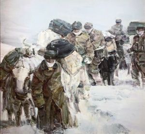 《情系边防——昆仑卫士》 袁志刚 油画 170cm×160cm 全国美展展出作品、新疆美术馆馆藏