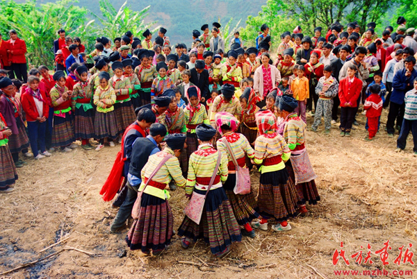 德昌傈僳族婚礼上男女青年的“打跳”“蹢脚舞” 胡小平摄影 引自民族画报