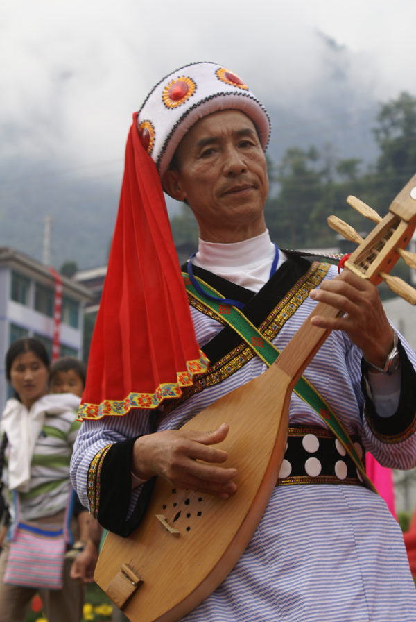 傈僳族民间器乐艺术具有独特的民族风格和特色,在傈僳族民间音乐中有重要地位。其种类主要有琵琶(刘军摄)、口弦、竹笛、叶笛、葫芦笙(刘军摄)、二胡等。
