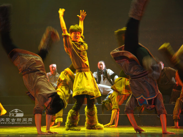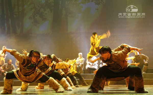 演员们的表演也颇为出色。参演的60多名演员全部来自鄂温克自治旗乌兰牧骑,这是一支以年轻人为主的队伍,他们在舞台上的精彩表现给这部历史题材的歌舞剧增添了青春的活力。比如“抢枢”一场,不仅形象地再现了鄂温克民间一项传统娱乐活动——“抢枢”,突显了年轻人活泼好动的特点,而且传达出鄂温克年轻人在迁徙途中不畏艰险、苦中作乐的顽强精神。尤其是在本场最后,小伙子们一段奔放狂野的群舞尽显阳刚之美,展现了鄂温克民族的豪爽与激情。