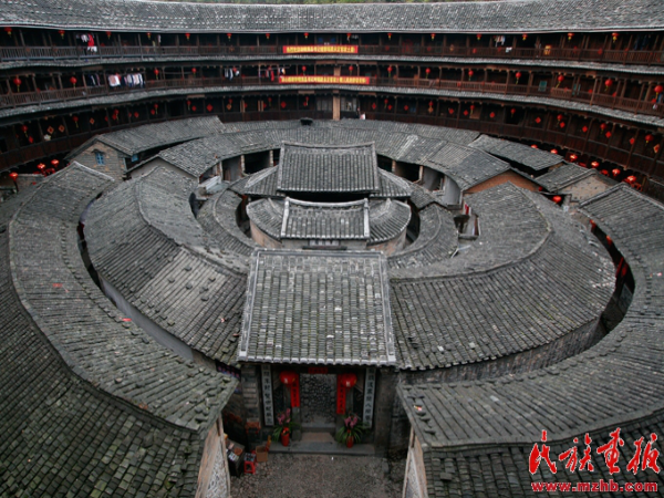 位于永定县高头乡的客家土楼承启楼建成于清代康熙年间,因为动工时间都艳阳高照、天公作美,所以又被称为“天助楼”。同时,承启楼是福建现存的最高大、古老的圆楼,也是文化内涵最丰富的一座土楼,所以又被称为“土楼王”。