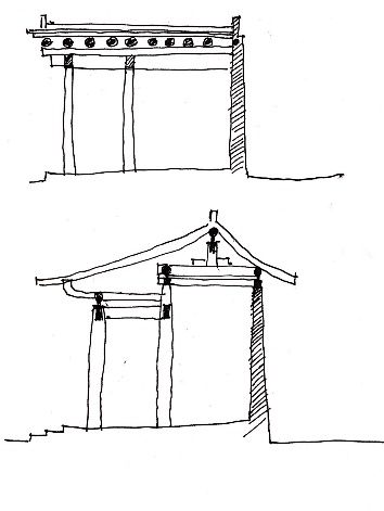 土坯墙建筑的建筑结构主要是土坯墙和木制的柱子承重,还有一种是土坯墙和抬梁架一起承重,最后一种是土坯墙承重。土坯墙受限于自身的材料和工艺问题,所以建筑进深一般情况下较小。