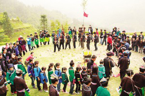 苗寨村民迎宾客 左慧 摄