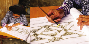 村里仍有年过古稀的老人忙着绘制蜡染纹样。