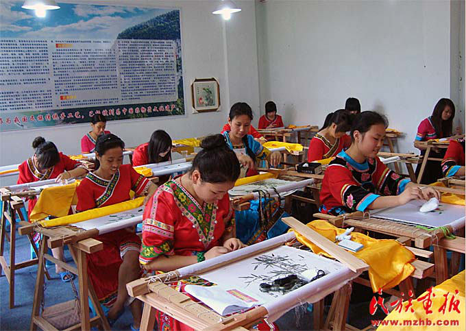 李绍玉在培训班免费教人刺绣,也走乡串户到苗寨,带动了一大批合作的绣娘