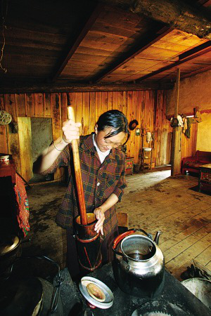受藏族生活方式的影响,珞巴族平时也喝酥油茶