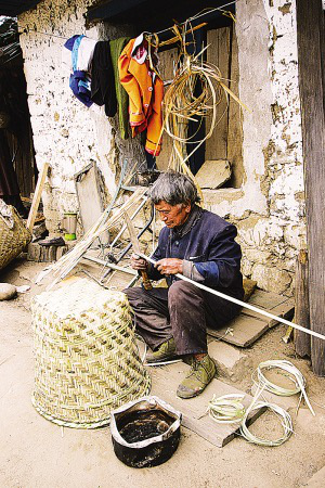 用竹皮编织的各种竹篓器具是珞巴族日常生活中不可缺少的用具
