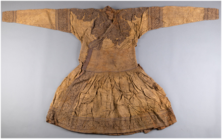 1978年出土于内蒙古包头达茂旗明水墓的蒙元辫线袍  内蒙古博物院馆藏一级文物