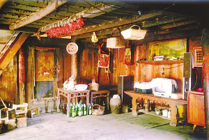 笔者看到的干栏式木楼和吊脚楼在使用的功能上相差无几,上层住人待客,楼下四壁用木板围挡,圈养畜禽,存放烧柴、农具和秋收临时堆放的粮食。猪圈靠里侧依柱围栏,其它空闲的地方打扫得干干净净,有的将织布机放在楼下明亮的地方。住房一般5间,两头两间是偏厦,中间3间是宽敞的堂屋,一头设火塘、土灶,为烤火、煮饭之处;另一头的中柱供临时设席敬神之用,也有的在板墙上设佛龛神位,供奉祖先;卧室依房柱用木板灵活隔间。大门有的开在房山墙一侧,也有开在中间的,皆登石阶、板梯而上。吊脚楼一栋挨着一栋,小巷道曲折狭窄,只容牵牛和顺向挑担通过。