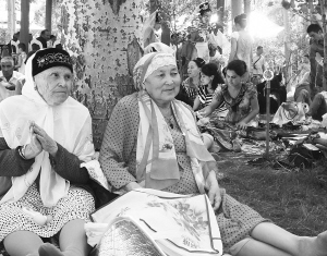 撒班节上,塔塔尔族老人餐后休闲聚在一起