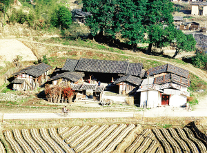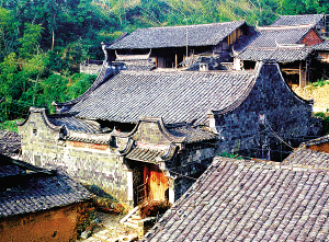 畲族主要聚居在浙江省和福建省山区的丘陵、山谷盆地。浙江景宁是我国唯一的畲族自治县。畲族聚居的村寨都在离县城不远的大山里,大都选择避风向阳、有水源的地方建房成村。在村寨四周栽种松树、枫树、榅树、苦槠,房前屋后种毛竹、果树。村口有树能挡风,屋后种树能蓄水,空气也格外新鲜,因此,便有了“造成风水画成龙”的畲族谚语。