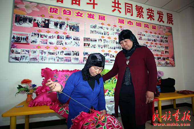东乡县妇联开展的手工编织技能培训使更多东乡族妇女利用刺绣等一技之长增加了家庭收入(胡发伟 摄影)