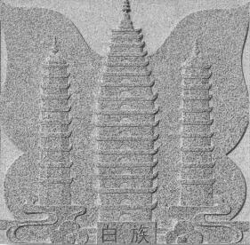 崇圣寺三塔是历史文化名城大理的标志和象征。蝴蝶象征忠贞爱情,常见于白族传统建筑、服饰或器物的装饰图案。大理三塔和蝴蝶图纹,是白族文化的象征。