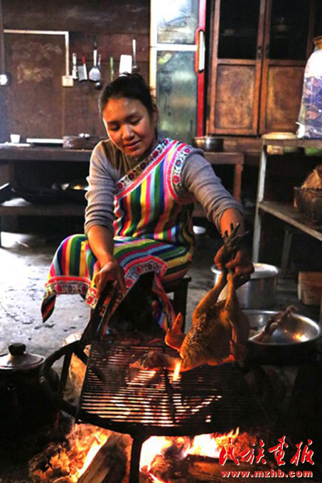火烧独龙鸡是独龙族人逢年过节团圆饭不可缺少的一道特色菜(余金成 摄影)