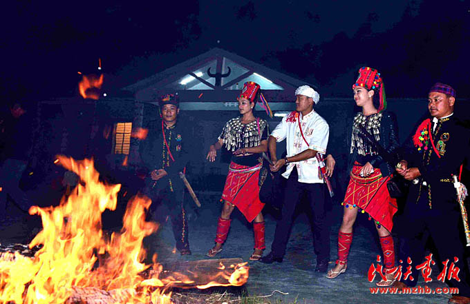 尚立文向记者介绍说:“以前景颇族过年,大年三十,一部分男人在家杀年猪,其余的就上山打猎。景颇族很慷慨,凡是获取到的猎物,见者都有份。女人除了在家准备年夜饭,也会上山或下坝子采野菜等。但不管是打猎的还是摘野菜的,都必须在太阳落山前到家,阖家欢度春节吃年夜饭。现在生活好了,不打猎不摘野菜了,但还是得遵循太阳落山之前到家的习俗。”