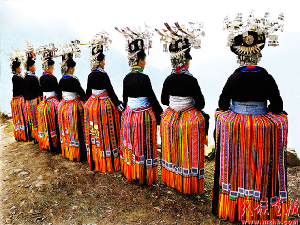 广西贺州过山瑶妇女身上服饰色彩极其丰富