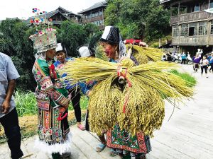 我的研究课题从“百鸟衣”服饰切入,实际也是希望将村寨中这种现有的生活智慧、群体生活习俗、村寨共同体意识揭示出来。比如“鼓藏节”期间,因村寨中共同的祖先信仰将大家凝聚在一起,大家自主自发分工,准备节日所需,包括制作“百鸟衣”服饰、每13天举办一次斗牛仪式,练习鼓藏歌等。我暂且将此现象称为“村寨共同体哲学”。在黔东南地区,因为共同的祖先信仰,这样的集体意识所塑造的和谐村寨文化至今依然被延续着。“村寨共同体哲学”可看作是千百年来“中国乡村精神”的一种反映。