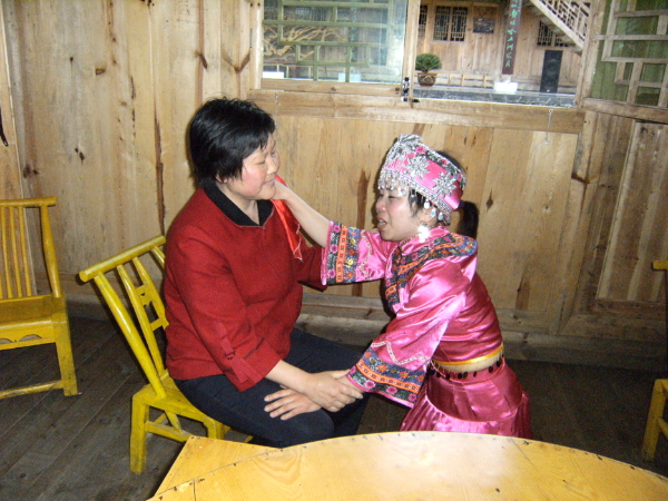 哭嫁歌内容有“母女对哭”“嫂妹对哭”“姐妹对哭”“哭离娘席”“哭别祖宗”“哭兄弟”“哭梳头”“骂媒人”“哭上轿”等,甚至还有同村同龄未婚姑娘的群哭——“哭十姊妹”。哭嫁歌源于土家族姑娘出嫁前的哭嫁之俗,越是临近婚期,哭声越悲,甚至通宵达旦。2010年,“土家族哭嫁歌”已被列入第三批国家级非物质文化遗产名录。