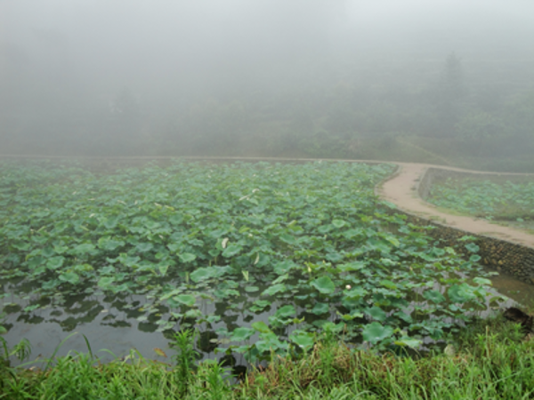 走在宽敞的葡萄架下,观赏延绵千余米的30多亩荷花绽放,茶山、果园、密林之中,不时清风徐来,令人心旷神怡。(摄影:王铁志)