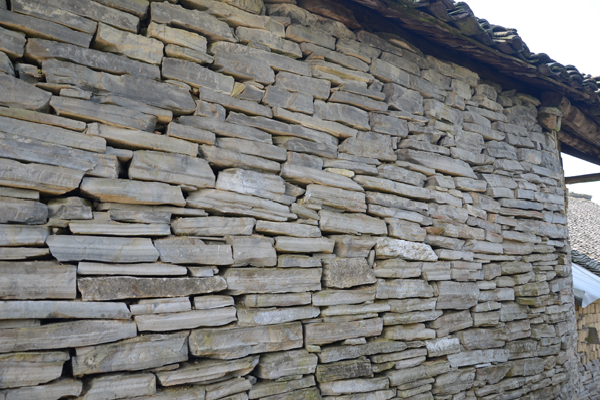 石板房以石条或石块砌墙,墙可垒至5至6米高;以石板盖顶,风雨不透。总之,除檩条、椽子是木料外,其余全是石料,甚至家用的桌、凳、灶、钵都是石头凿的。一切都朴实无华,固若金汤。这种房屋冬暖夏凉,防潮放火,相对采光较差。