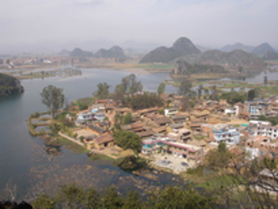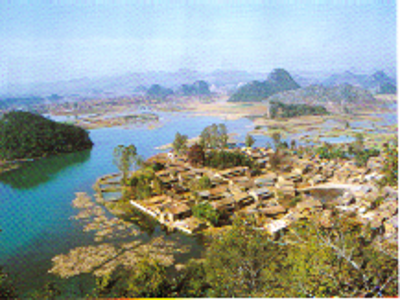 在一次学术会议上,笔者请教了首倡并主导“民族文化生态村”试点建设的尹绍亭教授,得知在他们首期的五个试点村落建设中,仙人洞村是比较成功的,于是在本项目的调查中,仙人洞村成为重点考察的对象之一。“仙人洞彝族文化生态村”位于云南丘北县城西北16公里的普者黑湖畔。“普者黑”为当地彝族撒尼语,意为“鱼虾多的湖潭”。普者黑实际是由众多湖泊、河流构成,总面积达165平方公里,已经开发成由5个景区、56个景点组成的滇东南国家级著名旅游景区。