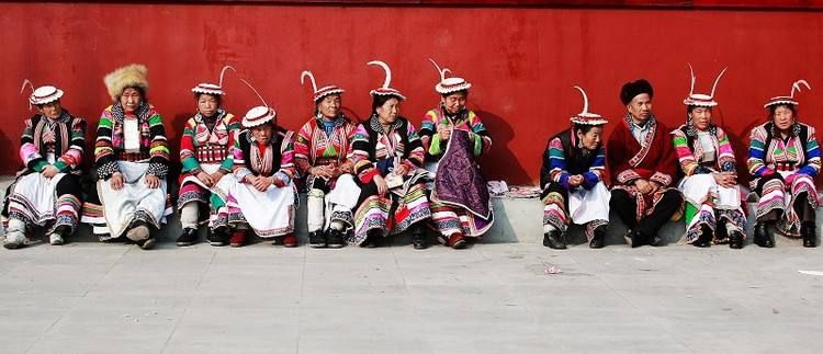 白马藏族的明显标记就是妇女头上都戴有颇有特色的盘形荷叶边的白帽,是羊毛做的,叫“盘盘帽”,又叫“蝉皮帽”,帽子的直径有15公分,高2-3公分,上面缠有红、蓝、黑三色的彩带,而且飘扬在帽缘外5-6公分,女性的帽子还绕上珠饰或铜钮,这种帽子既不保温,又不能遮挡风雨,一年四季都带,纯粹是装饰,帽子上插着吉祥的锦鸡颈羽或者雄鸡白色尾羽,寓意为吉祥。为什么白马藏族帽子上要插锦鸡颈羽或者雄鸡白色尾羽呢?
