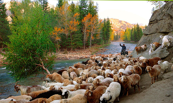 我国的主要牧业区在内蒙古自治区、新疆维吾尔自治区、西藏自治区和青海省、四川省与云南省。从事畜牧业经济的主要有蒙古族、藏族、哈萨克族、柯尔克孜族、塔吉克族、裕固族,养殖牛羊较多的还有回族、维吾尔族、彝族、羌族、纳西族等民族。畜牧业生产为广大群众提供了丰富的肉制品和乳制品。新疆蒙古族牧民晾晒羊肉干被称为蒙古羊系之冠的“乌珠穆沁肥尾羊”,成年公羊重达100多公斤,光尾巴就有10公斤重,肉美味鲜,肥而不腻,鲜而不膻,北京“东来顺”的涮羊肉采用的就是这种羊肉,受到中外宾客普遍称赞。内蒙古自治区养殖的三河羊和草原红牛也是肉乳兼用的优良品种。