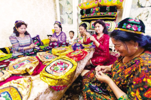 新疆哈密传统刺绣品牌“密绣”绣娘展示刺绣技艺。 资料图片