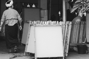 不论是做包装物还是书画,对构纸来说,幸运地遇上了一个菩提树下心地善良的民族。剥构树皮时,她们口含真言,念念有词,她们为树的伤落泪。刀落下的寒光让她们周身寒彻,但她们没有让刀锋停下来,她们要完成一种使命。