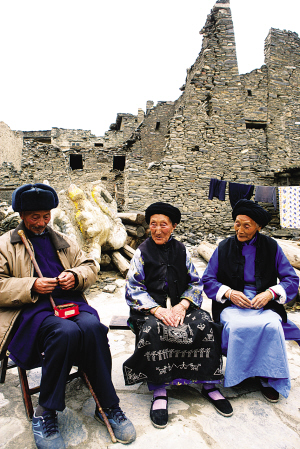 碉楼虽倒,羌族永在。震后的桃坪寨,老人的表情还是如此安详