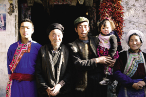 地震前萝卜寨村民张文泉一家四世同堂,如今照片中98岁的张福连老人(左二)已在地震中遇难