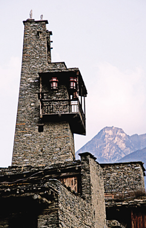震前,理县桃坪羌寨的千年碉楼