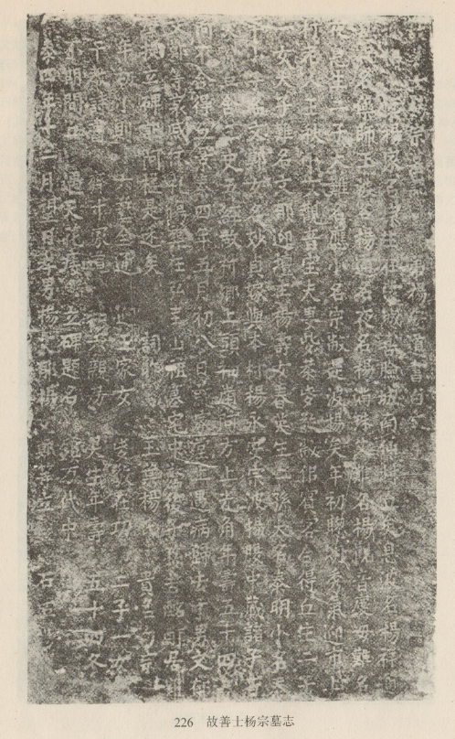 白文墓志。杨安道书。明景泰四年(1453年)立于大理喜洲西五台峰下弘圭山上。现已不存。碑文是以汉字写白语。内容叙杨宗身世及姻亲关系。对研究白族历史、民俗、语言皆有参考价值。