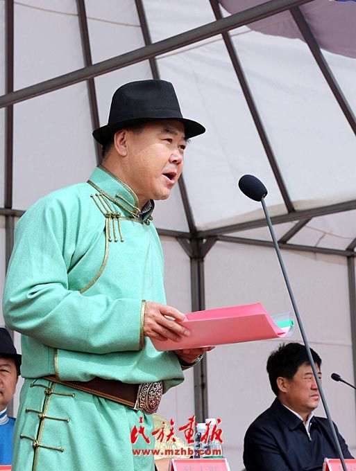 鄂尔多斯市民委主任雷•斯仁在开幕式上讲话