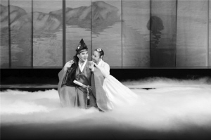 中国朝鲜族唱剧《春香传》剧照:春香与李梦龙。 资料图片