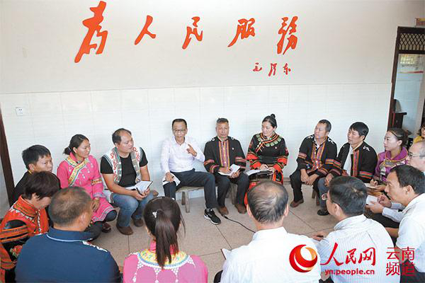 “边疆人民感党恩,听党话,跟党走,建设新时代的新农村,啰西贡 !哎!啰西贡!哎 !江三木啰……”11月2日,云南省普洱市宁洱县同心镇的那柯里村委会会议室歌声四起、掌声不断。来村委会办事的群众以为是举办文艺活动,都凑来观看,不一会儿,会议室甚至门口都挤满了人。