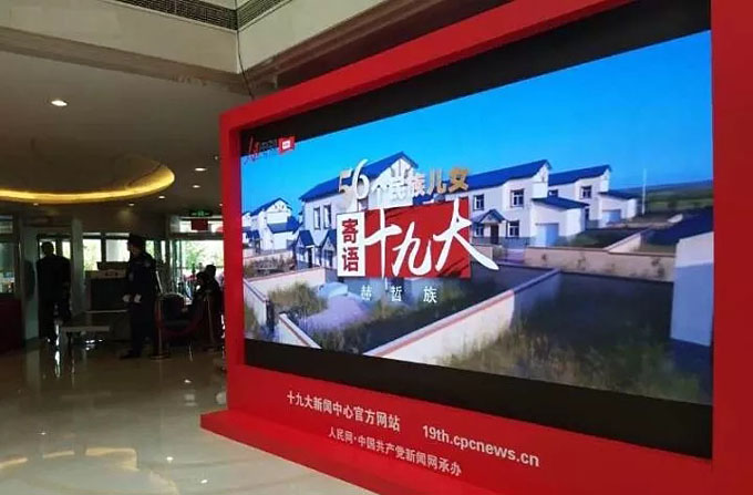 大型系列微视频“56个民族儿女寄语十九大”视频十九大期间在梅地亚新闻中心大屏展示并滚动播出(人民网)
