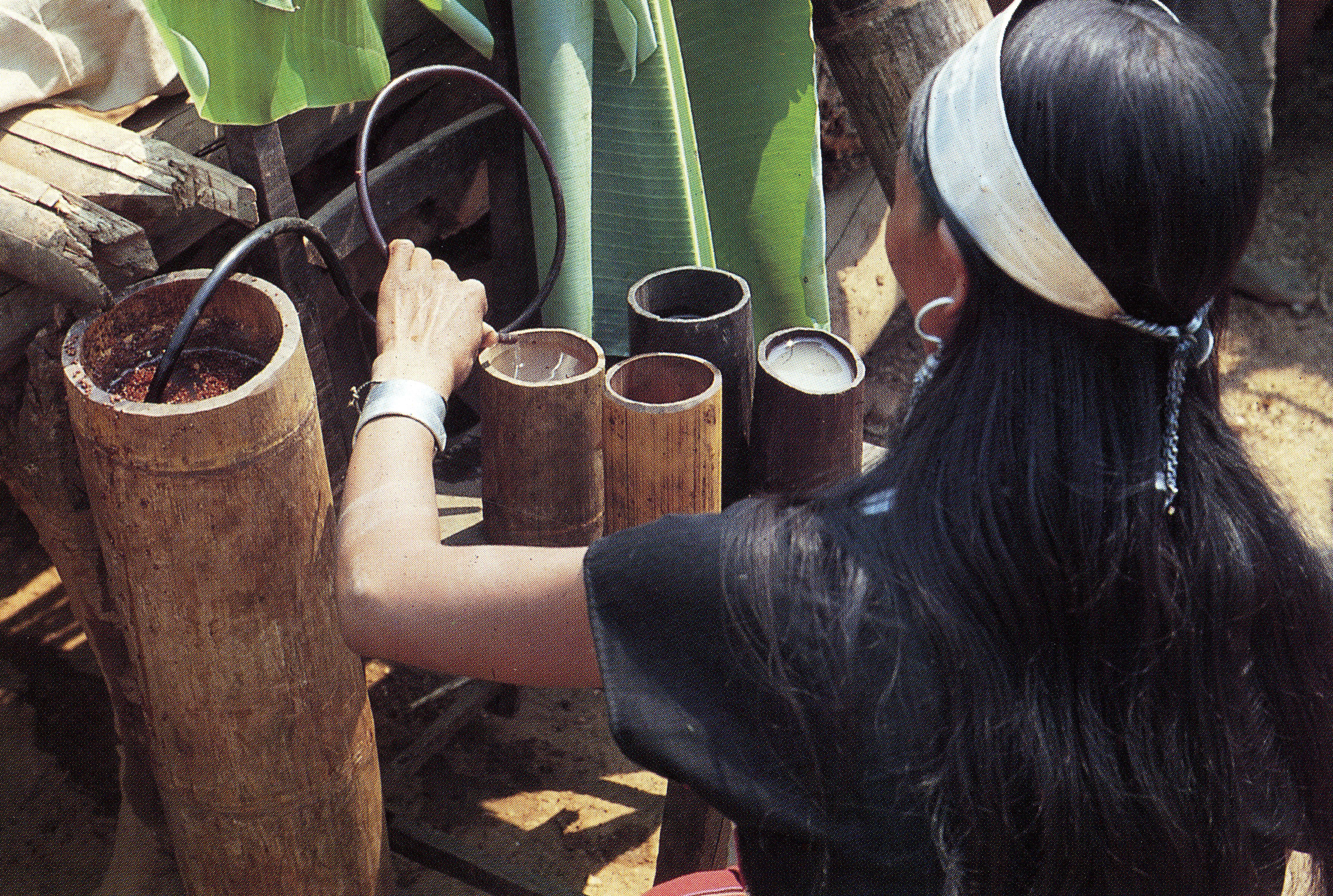 图片说明:佤族竹筒制水酒