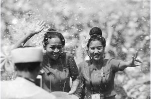 4月15日,泼水狂欢活动在景洪市泼水广场举行。各族群众用相互泼水的方式互送祝福、传递欢乐。