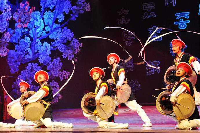 其实朝鲜族的打击乐发展历史源远流长。我国民族打击乐众多,特征各异,各民族的打击乐特征又连接着本民族的其他音乐。朝鲜族音乐文化的产生与发展相当古老,朝鲜族打击乐与音乐形式多种多样,有各种类型,如“盘坐式四物乐”、“游走式四物乐”、“立鼓”等等,而四物乐是朝鲜族具有代表性的打击器乐组合之一。