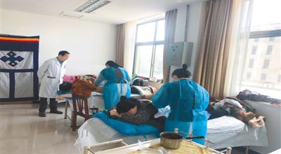 做完藏药浴的患者在接受涂擦治疗。