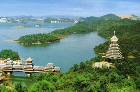 贵州国家级风景名胜区之一的红枫湖风景名胜区是连贵州本地人都十分爱去游览的地方,它不仅仅因它的湖泊面积大更因它的湖上星罗棋步的小岛而吸引着本地的外地的游客。它的水域总面积为57.2平方公里,蓄水量可达6亿立方米,为贵州高原人造湖之最,据专家考证出来的数据显示,红枫湖比北京的十三陵水库大12倍,相当于6个杭州西湖。