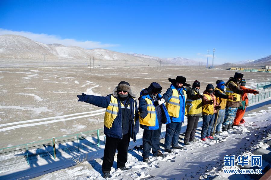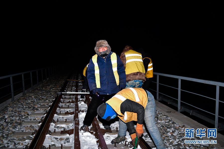 1月11日,中国铁路青藏集团有限公司格尔木工务段望昆线路车间的于本蕃(右一)和