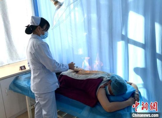 图为青海省海西州医护人员采用中藏医传统疗法治疗。(资料图)韩明媚 摄