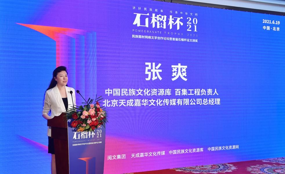 中国民族文化资源库负责人、北京天成嘉华文化传媒总经理张爽表示,将借助互联网文学发展机遇,与阅文集团和腾讯影业合作:通过石榴杯征文活动,挖掘更多的好故事、好题材;通过建立民族影视发展基金,加强对好故事转化为影视、动漫文化产品的投资力度;通过版权合作,对影视、动漫和文化衍生品深度开发和价值的放大呈现;并通过文化产品与民族地区文旅产业结合,推动民族经济文化发展。