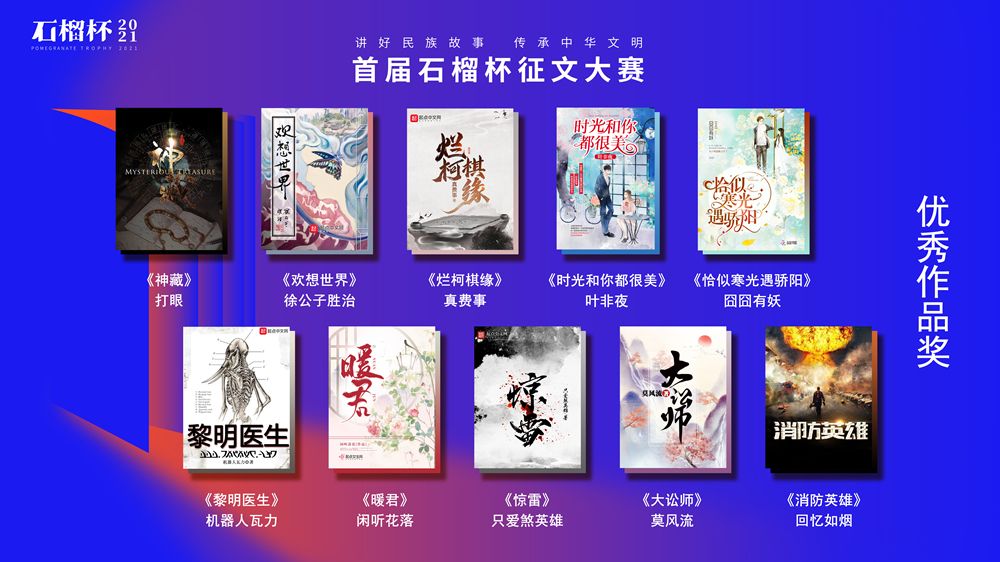 在石榴杯征文大赛的带动下,民族题材网络文学创作精品迭出。讲述大学生留守西藏投身边疆建设的《追牦牛的人》,刻画西南边陲土家族少年通过奋斗改变人生命运的《川水情》,展示新疆多元民族文化融合与产业建设风采的《中国大纺歌》……从饮食文化到传统节庆,从民族工艺美术传统到工业产业升级变迁,从个人奋斗故事到新时期脱贫攻坚,这些作品既反映民族风情,呈现民族文化特色,也展示了在时代背景下,全国各族儿女共同的奋斗目标。多元题材融合 多彩文化画卷首届石榴杯征文大赛以深挖民族文化宝藏、培育优秀作品和优秀作家、赋能“民族IP”建设为目标,鼓励作家创作民族文化历史题材、现代民族题材、民族神话故事与传说、军事、科幻及轻小说等方向,体现中华民族像石榴籽一样紧紧抱在一起的精神风貌。大赛吸引了众多白金作家、大神作家踊跃参与,并有大量网络文学的新作者积极参赛,其中不乏少数民族作家。他们将多姿多彩的中华文化与多元题材有机融合,创作了不同类型的网络文学精品,展现了大赛在作家和作品培育上的积极引导作用。